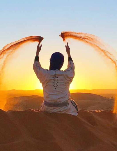 Despierta temprano para admirar el amanecer en el Sahara. Después del desayuno, regreso en camello o 4×4 para continuar el viaje.
