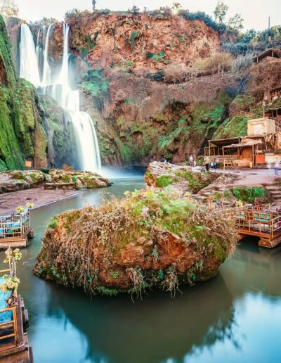 Un café junto al río proporciona el lugar perfecto para un almuerzo relajado, donde podrás saborear un tradicional tagine bereber mientras escuchas el sonido del agua y disfrutas de la atmósfera tranquila. Después del almuerzo, habrá tiempo libre para explorar más la zona, ya sea caminando por los senderos, fotografiando las cascadas desde distintos ángulos o disfrutando de un paseo opcional en barco en la base de la cascada para obtener una perspectiva única.