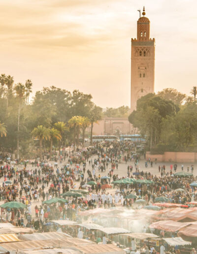 Dedica el último día a explorar las maravillas de Marrakech con un guía local. Visita el Palacio de la Bahía, las Tumbas Saadíes y la Mezquita Koutoubia antes de sumergirte en los animados zocos. Termina tu aventura en la vibrante plaza Jemaa el-Fna, donde músicos, narradores y artistas callejeros capturan el espíritu de Marruecos.